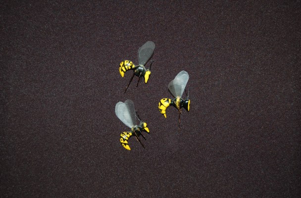 Image: Three potentially balloon popping wasps made by an unknown Ukrainian craftsman.