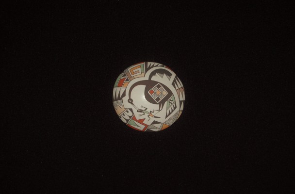 Image: A hollow Acoma Pueblo seed pot designed to save seeds until the next planting and made by Acoma potter Carolyn Concho.